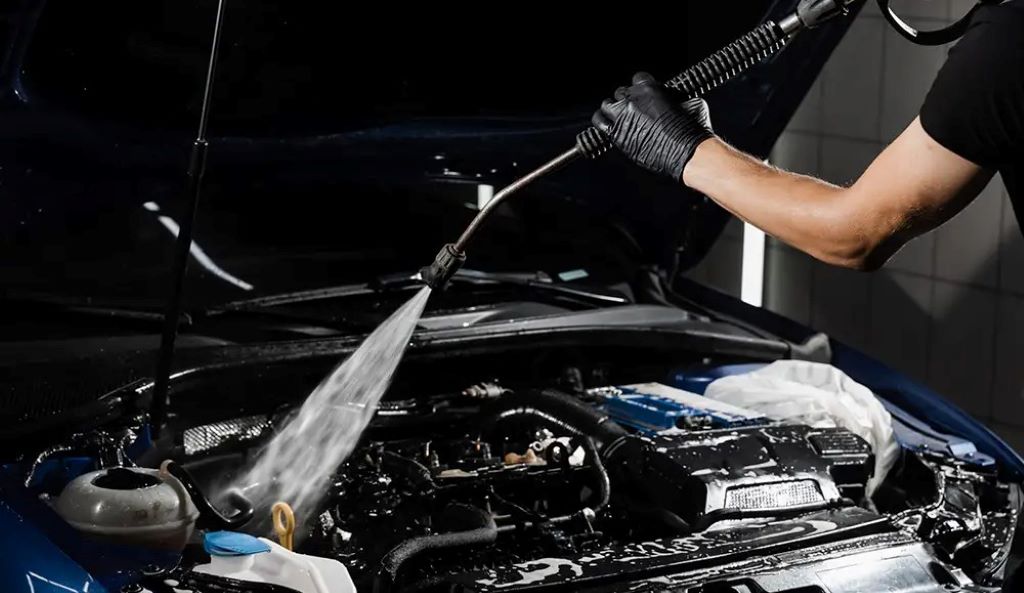 Can I use a pressure washer to clean my car engine?
